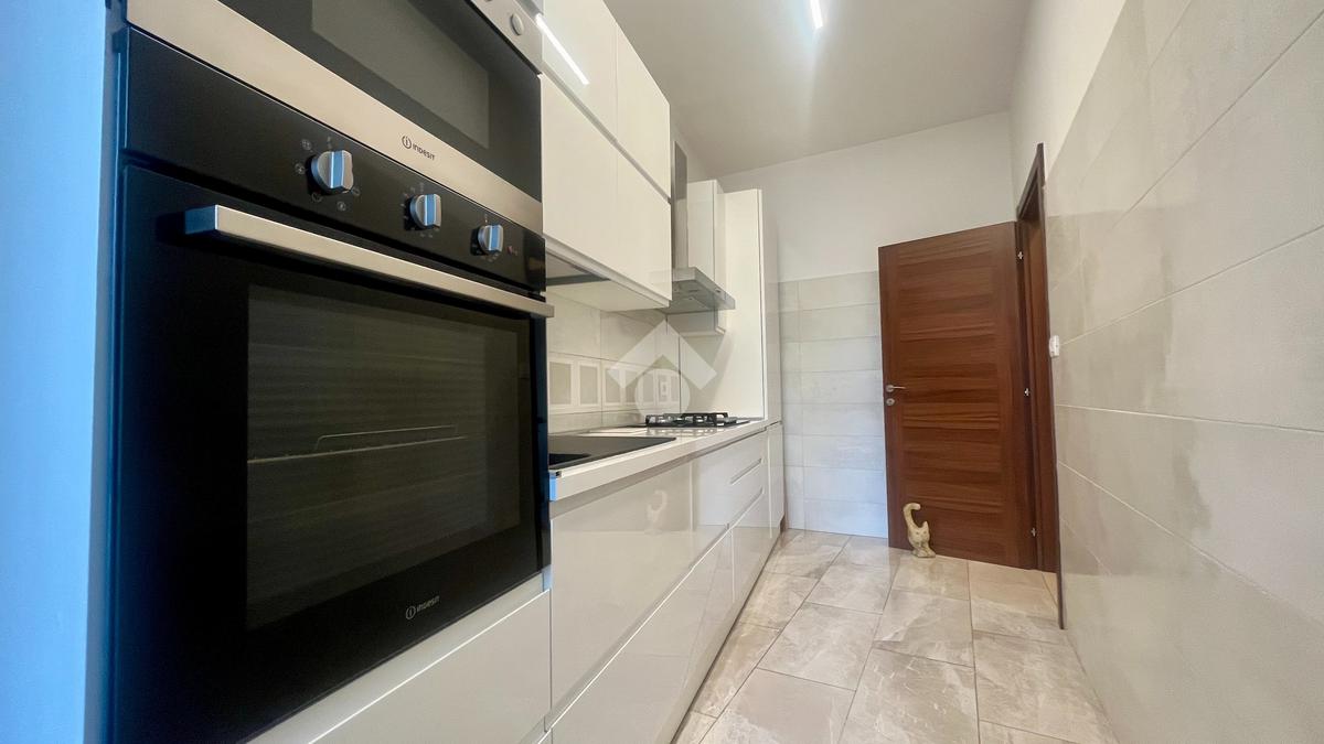 Zona Giorno: Un ampio living accogliente, ideale per i momenti di relax, con accesso diretto al primo balcone della casa. La cucina abitabile è spaziosa e funzionale, servita da un secondo balcone tecnico perfetto per l'organizzazione di un angolo lavanderia riservato.Zona Notte: Un disimpegno conduce alle due camere da letto matrimoniali, entrambe caratterizzate da metrature generose, tipiche delle costruzioni signorili, e un bagno ben rifinito.