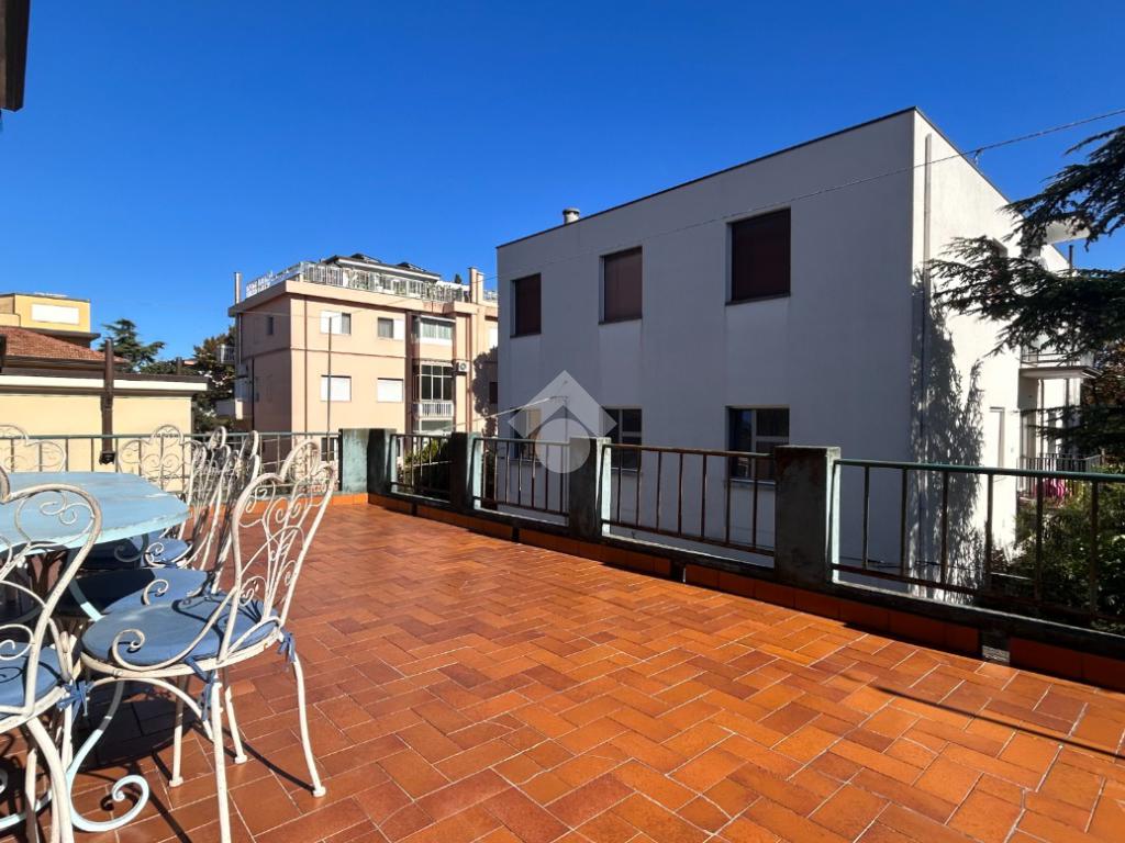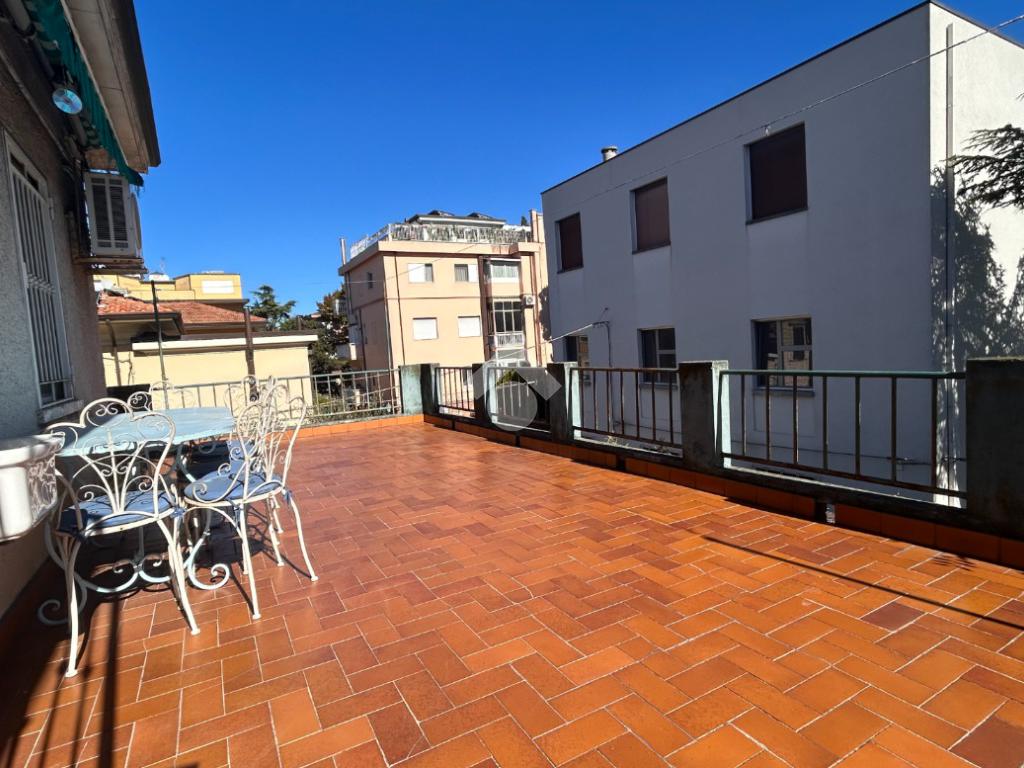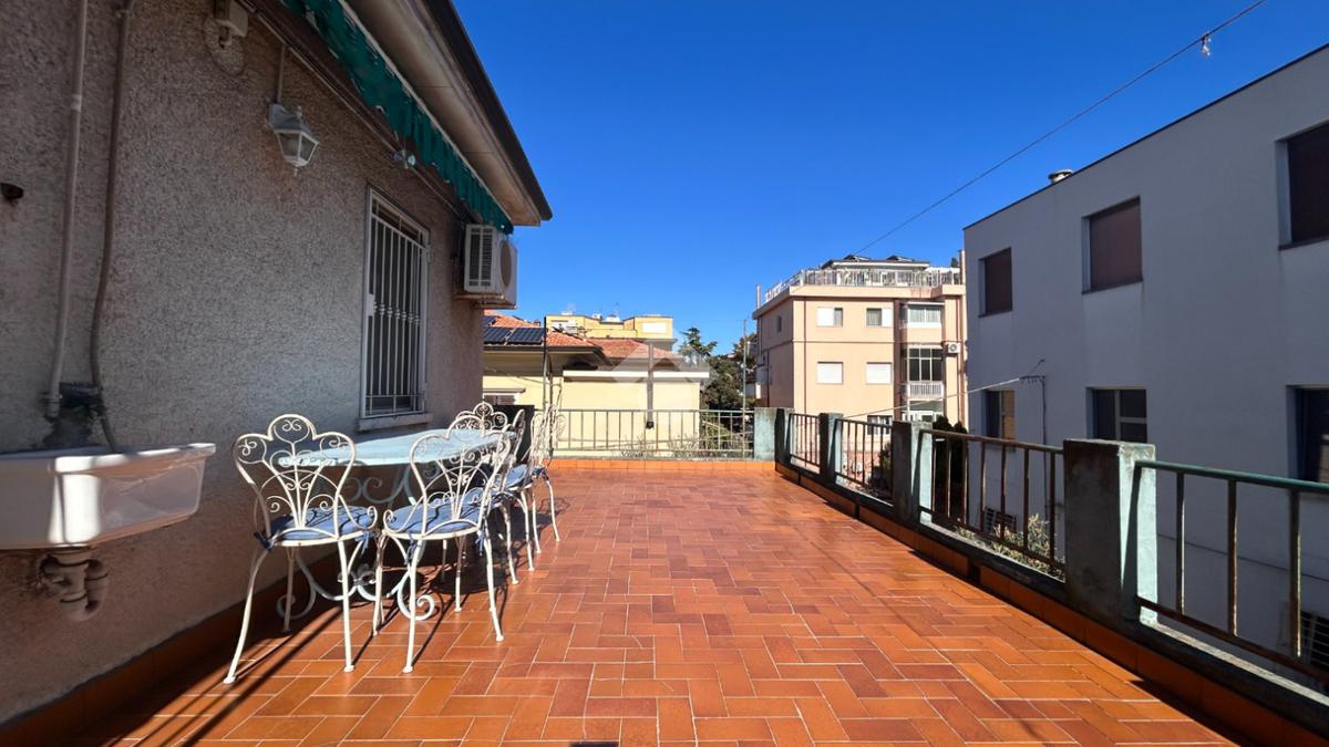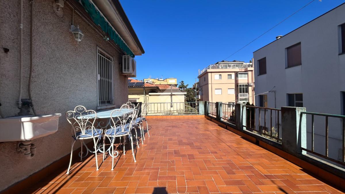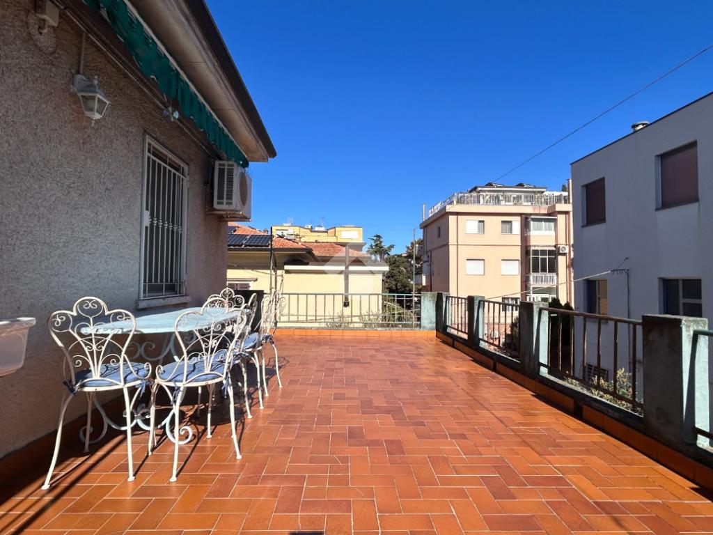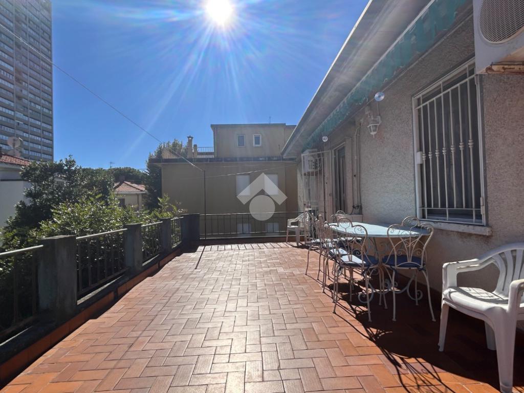 Il fiore all'occhiello di questo appartamento è sicuramente il grande terrazzo ideale per condividere momenti di convivialità e relax durante la stagione.