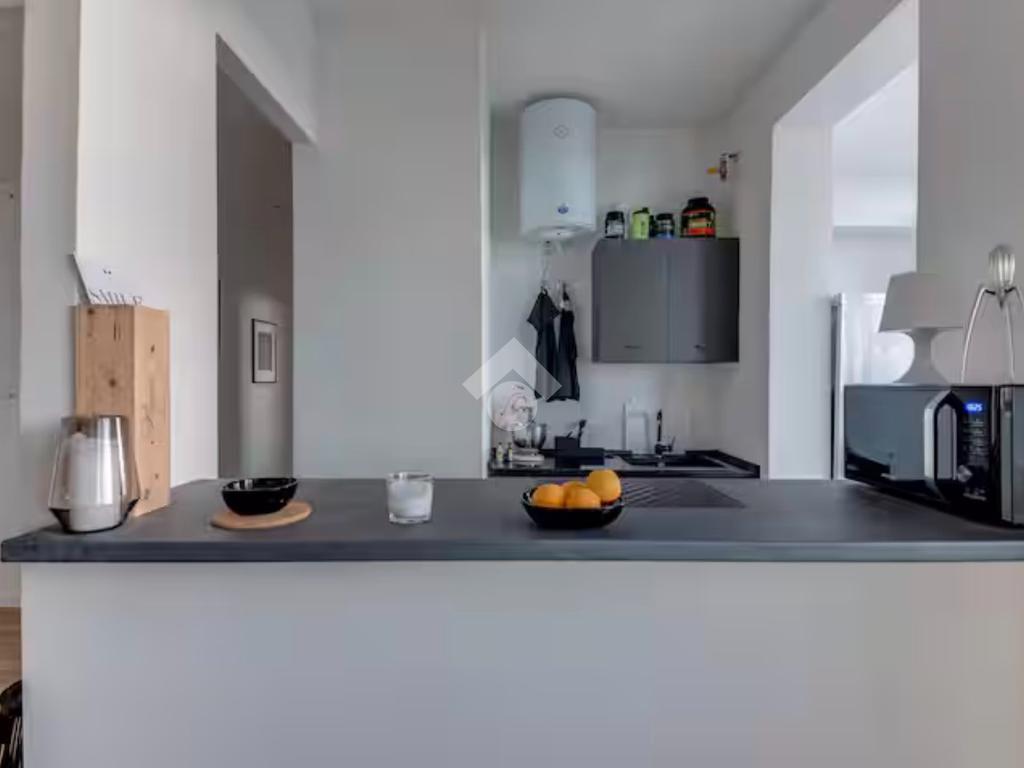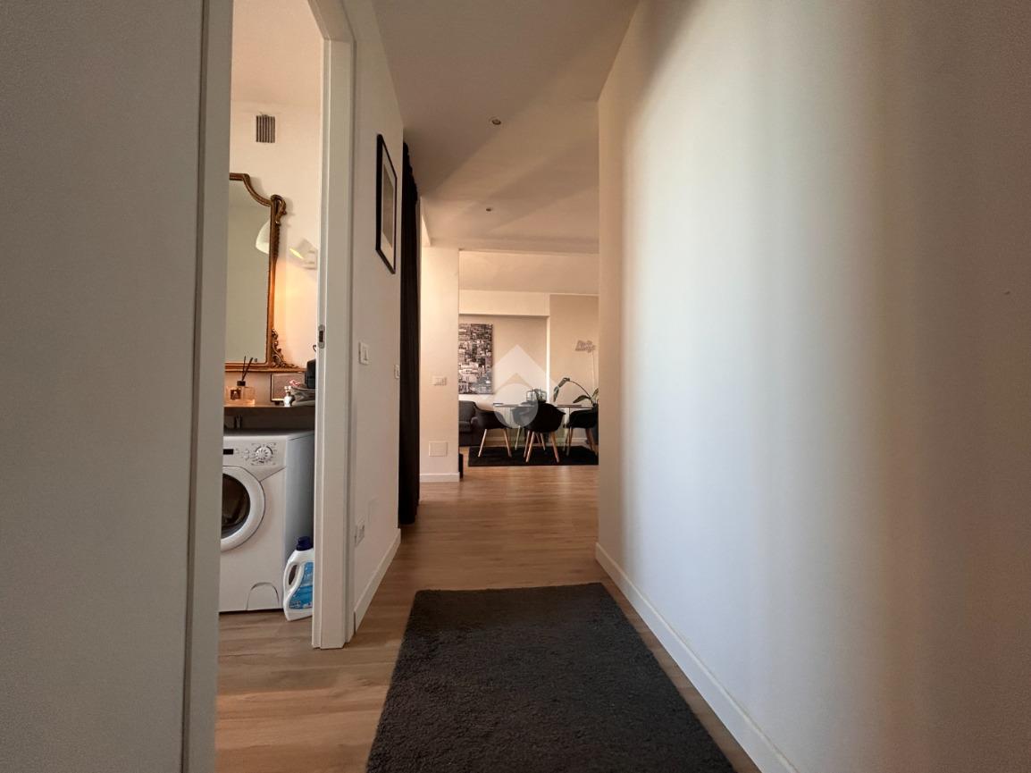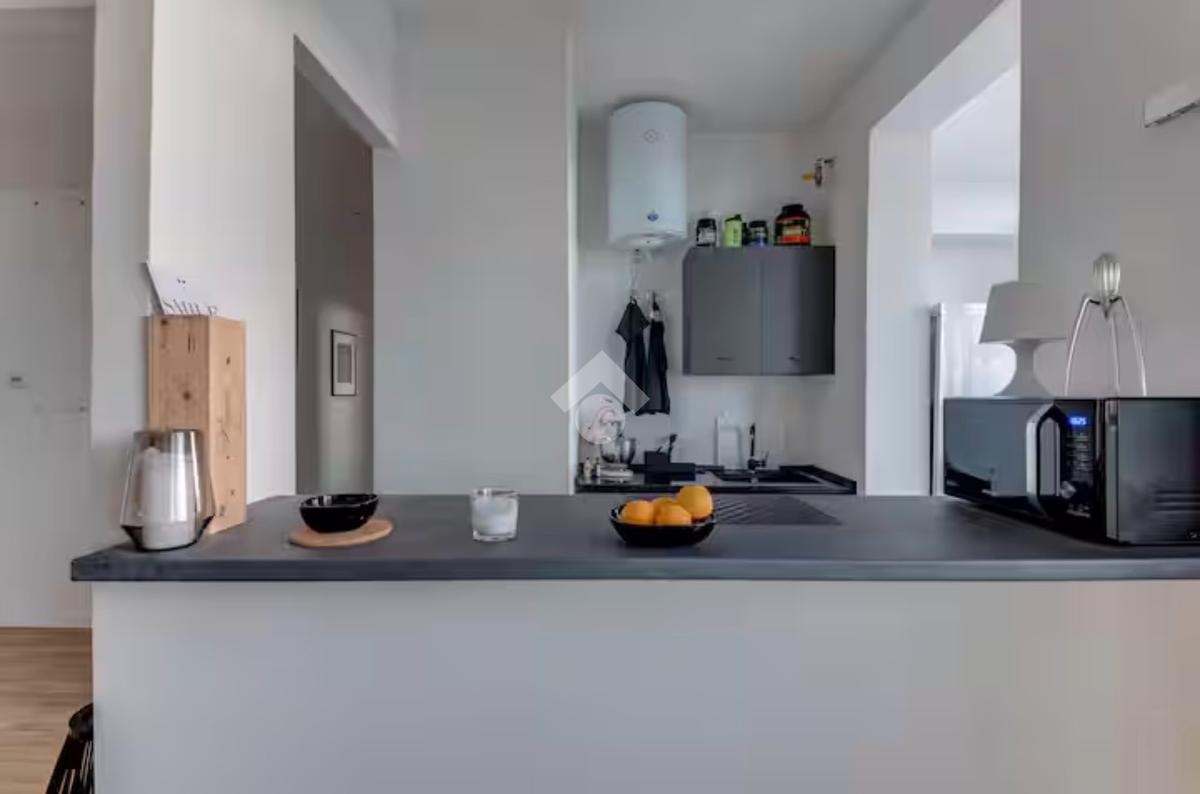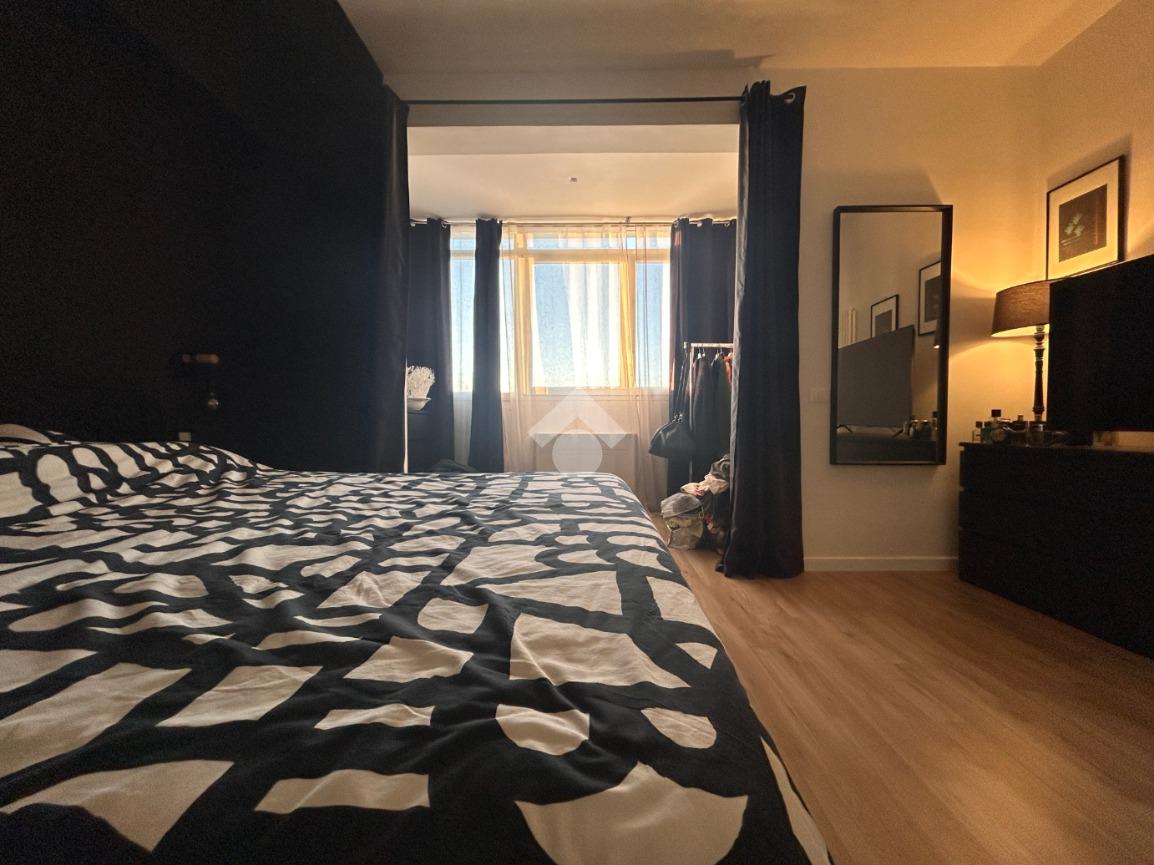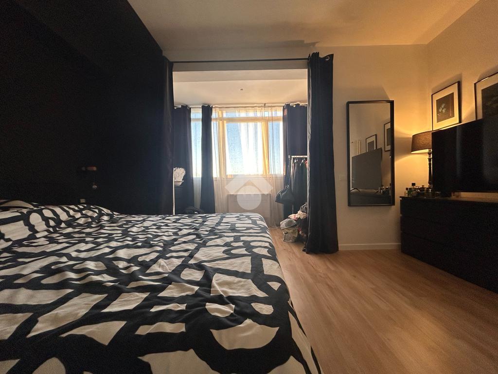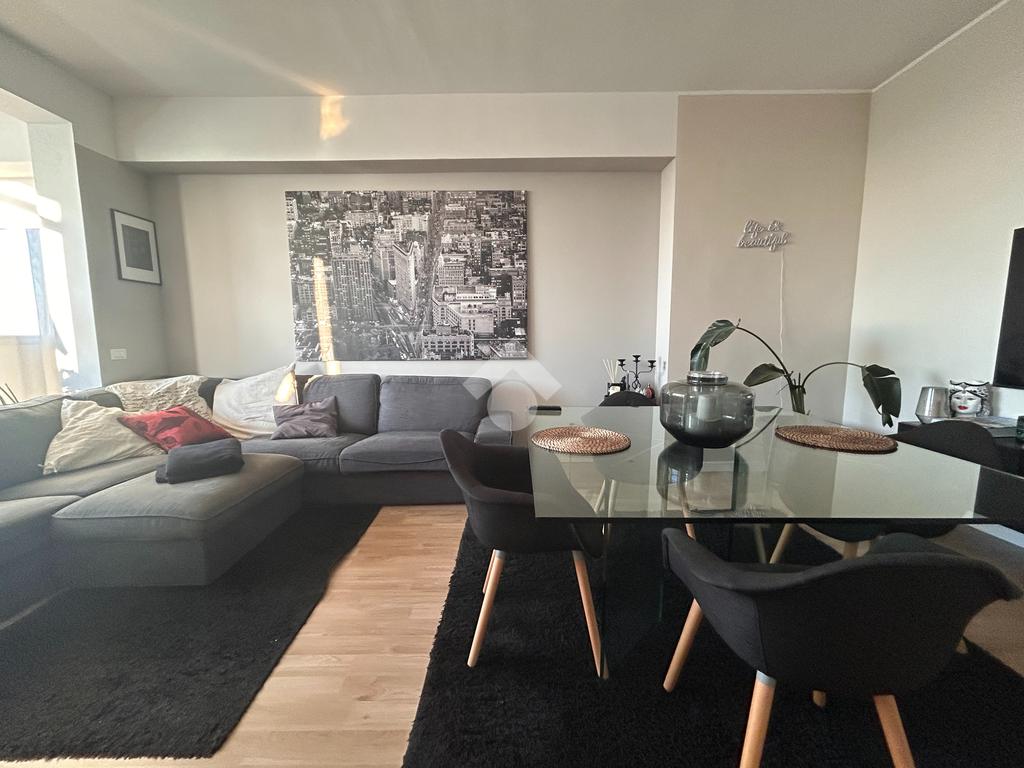 Appena si entra, si è accolti da un ambiente unico e luminoso: soggiorno e cucina si fondono in un ampio open space, pensato per vivere la casa in modo pratico e contemporaneo. La luce naturale filtra dalle grandi vetrate, regalando alla zona giorno una vista mozzafiato.